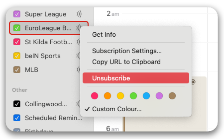 or alternatively, open any event of the publisher you wish to remove and click the Unsubscribe button.